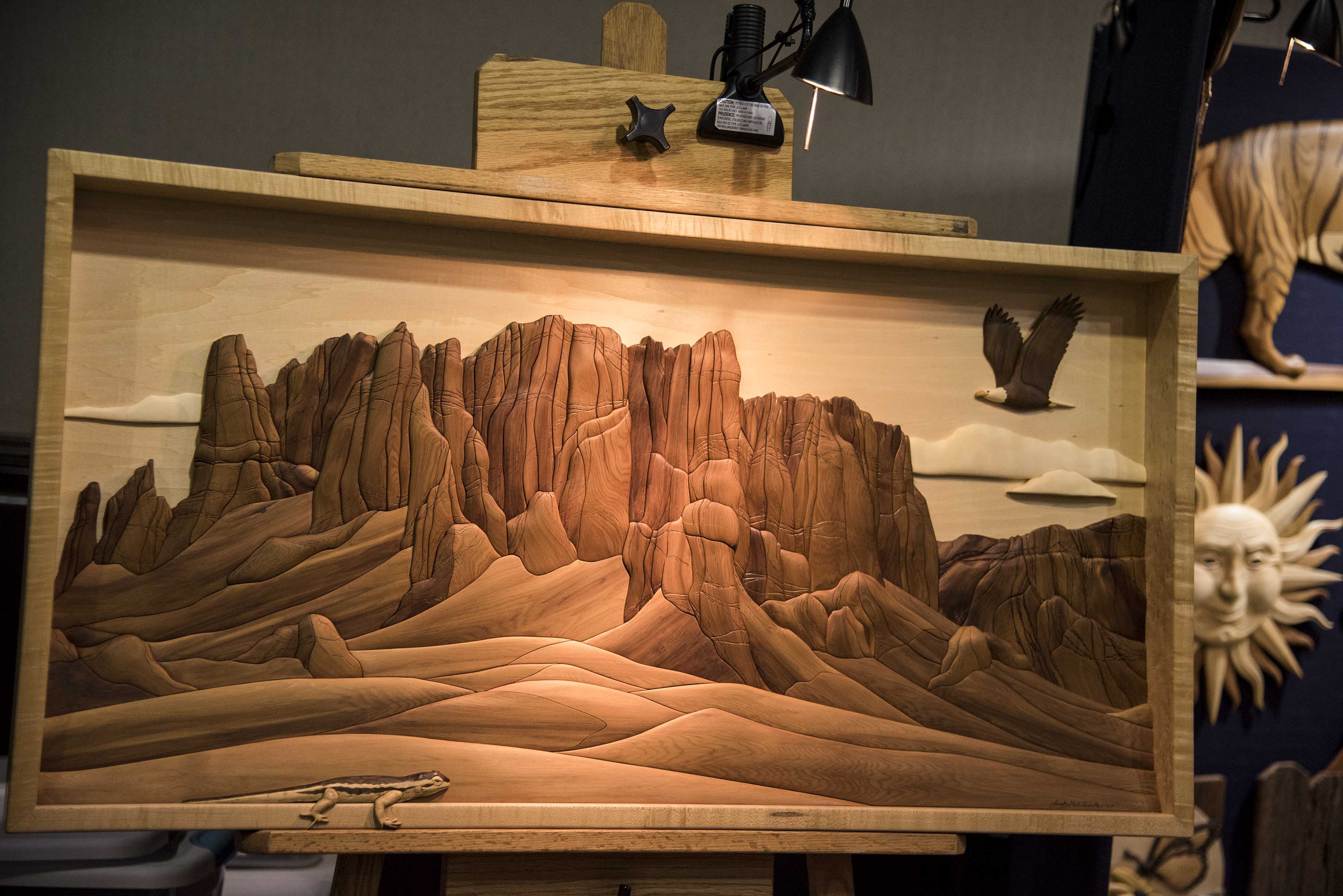 “Artistry in Wood is a perfect name for the show,” said the well-known intarsia artist Judy Gale Roberts after attending the Dayton Carvers Guild’s annual event. “The show encompasses so many woodworking techniques—carving, pyrography, fretwork, intarsia, woodturning, and combinations of all five skills.”